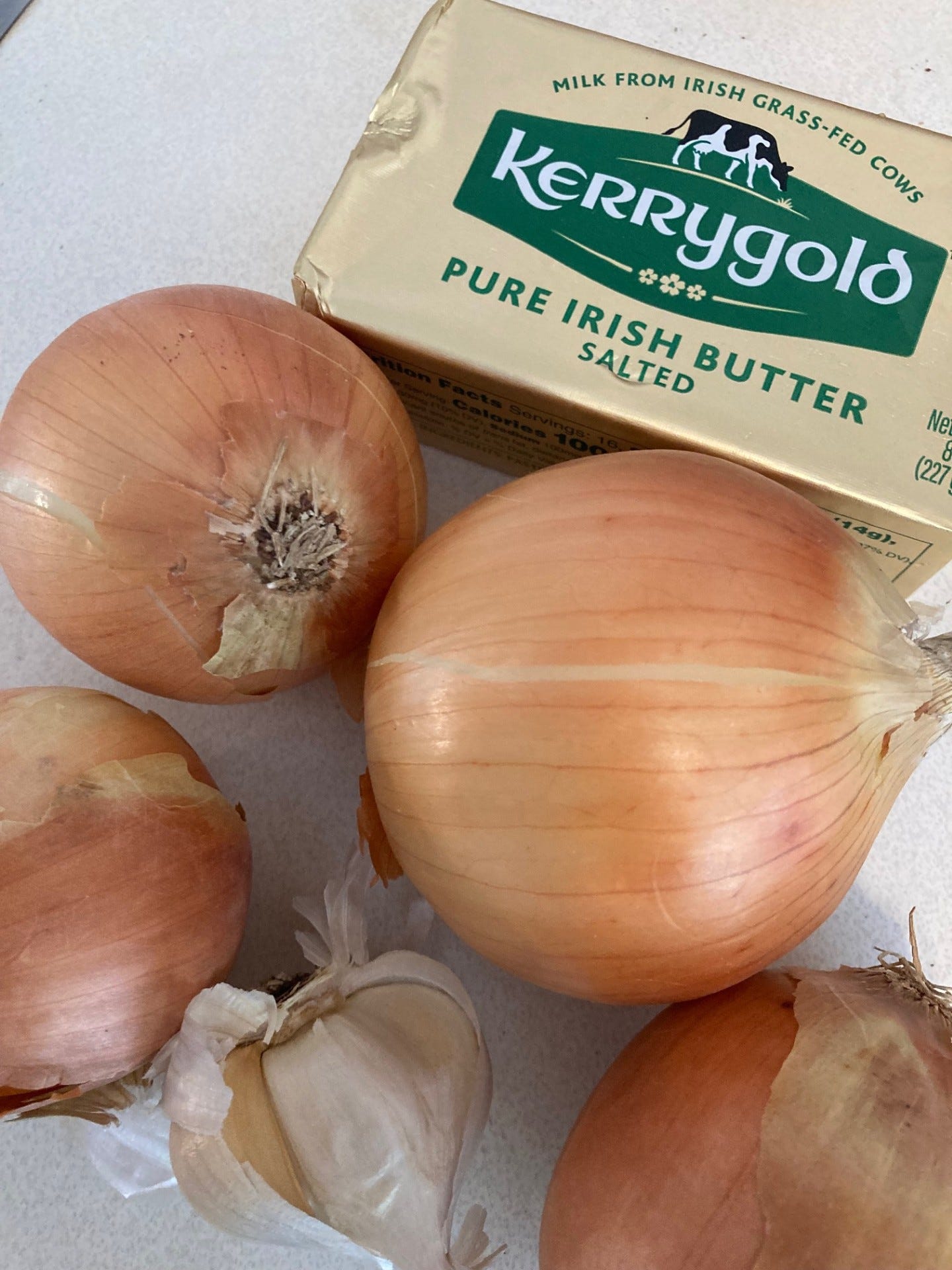 Heat a stainless steel soup pot or enameled Dutch oven over medium heat. Melt butter then add chopped onions. Sauté 10-12 minutes, stirring occasionally, until softened and golden. Add minced garlic and sauté 1 minute longer.
